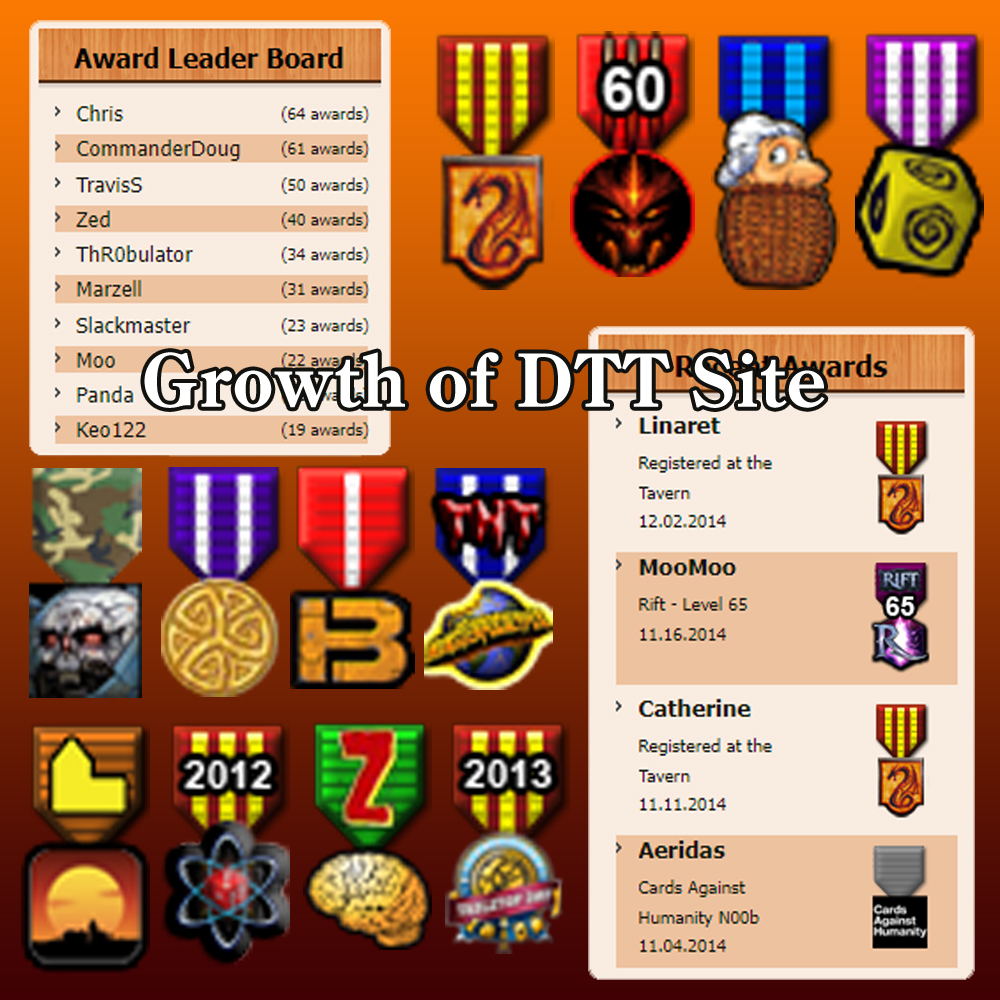 To support this growing multi-game community, Doug and Chris re-designed the DragonsTearTavern.com web site to gamify membership. This included customizable profiles, badges for playing / winning / losing games (with badge leaderboards of course), expanded forums, social media feeds, calendar of events, and links to gaming comics and news sites. This site would become the foundation of representing DTT and its members.